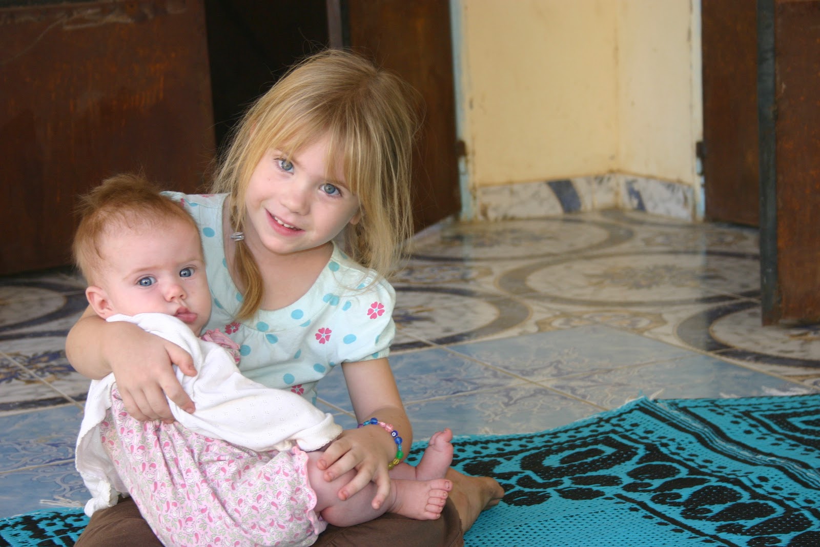 You can have blog posts just for the sake of a picture, right? What?!? That’s what most of my blog posts are? Oh yeah :) In that case, here’s Evangeline and Hadassah sitting together on our back veranda (that word makes our house sound fancy doesn’t it):