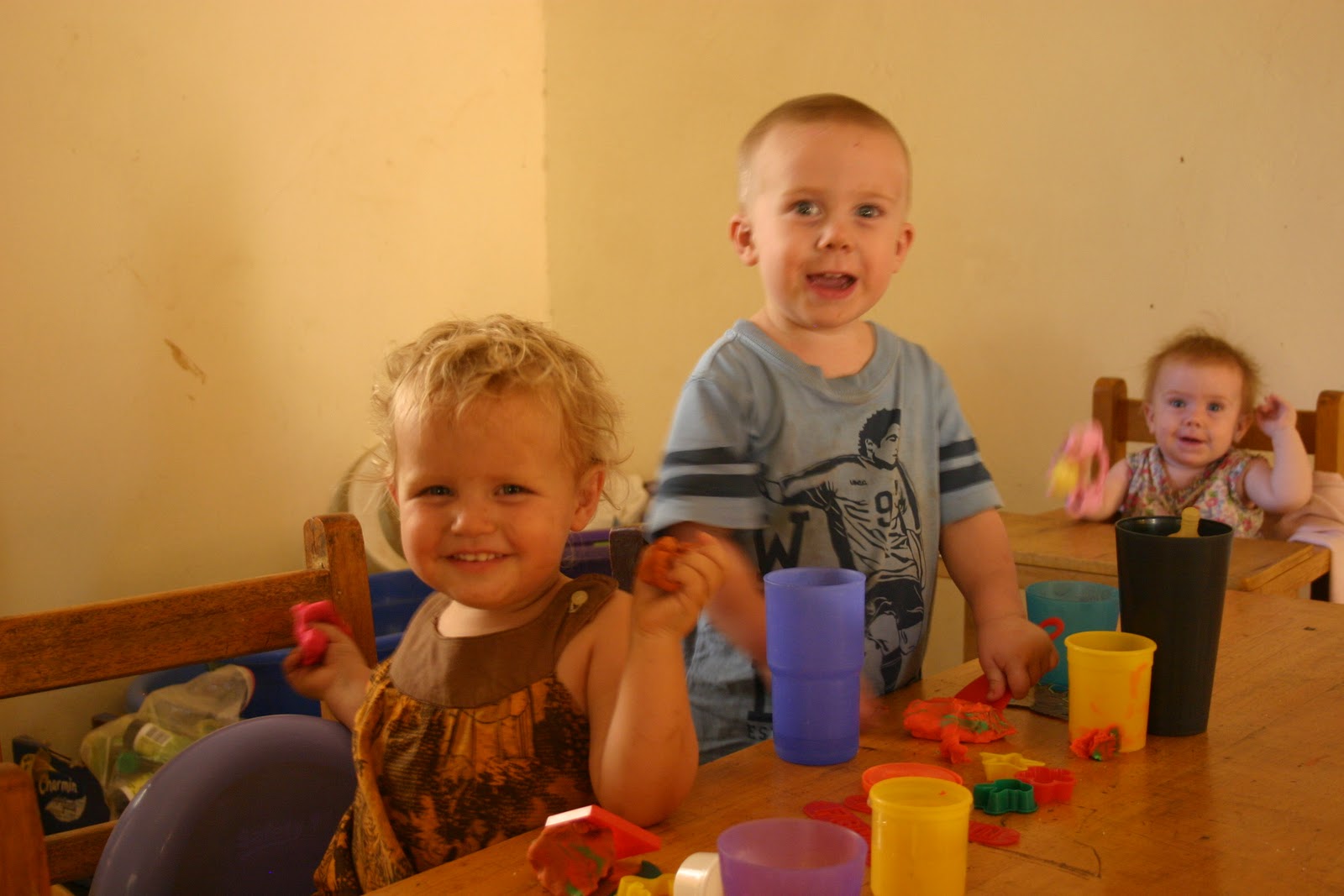 Here’s Athanasius and Hannah playing with some Play-Dough, while Hadassah looks on: