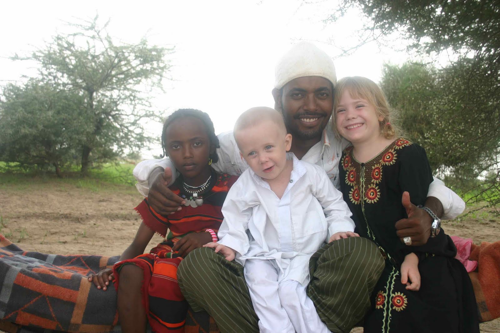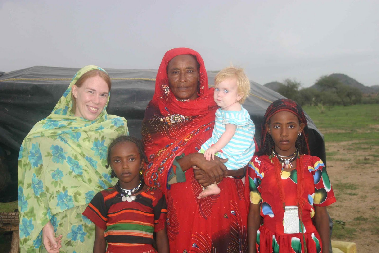 The kids were very excited. They enjoyed meeting new friends, seeing animals, drinking camel milk (it was creamy), and eating a sheep that was killed for supper. Here’s a picture of Sonja and Hadassah with Noah’s mother, sister, and nephew: