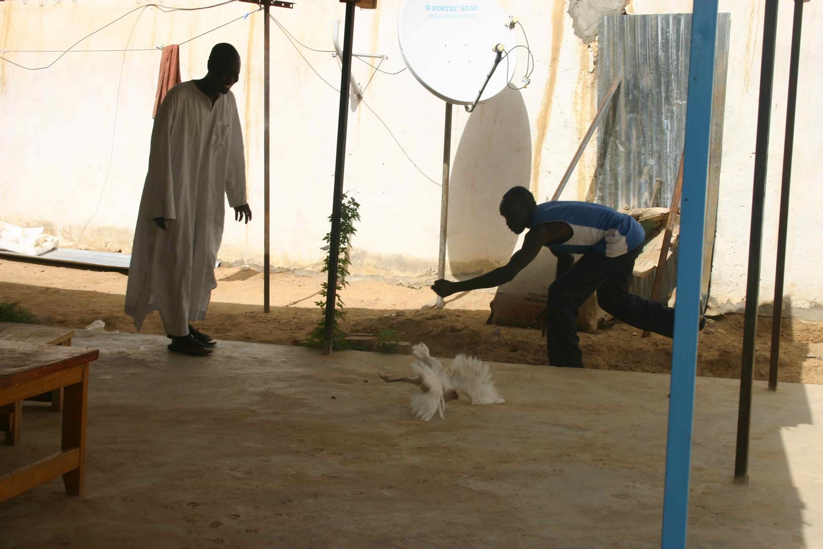 I know, I know…it sounds like something that people in a small farming community do for fun on the weekends….like cow-tipping, right Wade?I meant to put this up a long time ago, but somehow forgot about it. During one of my trips to the refugee camps to teach English, one of my students purchased some chickens and kept them at the Jesuit Refugee Services (JRS) station while the classes were ongoing.