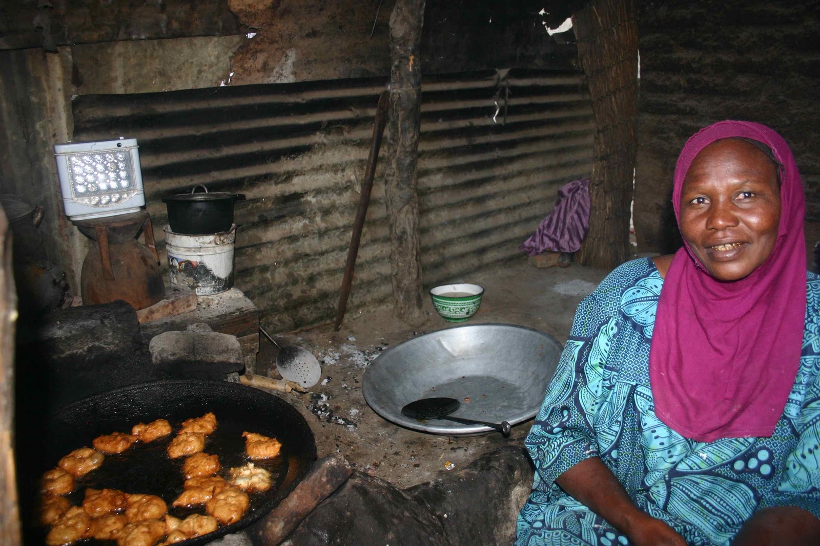 A common breakfast (or snack) here in Chad is fungasu. It is made by frying little round balls of dough in oil. Our neighbor Habsita makes them everyday. Here she is in her kitchen showing the process: