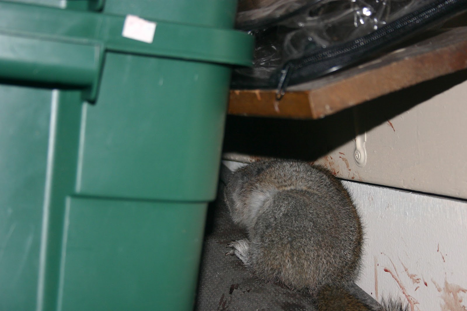 So, when we returned from Roseau last Thursday, there was a terrible odor outside of our door. It smelled like a dead animal. After searching behind some air conditioning units that are sitting outside of our door, I found this was indeed the case. A poor squirrel has met its maker.