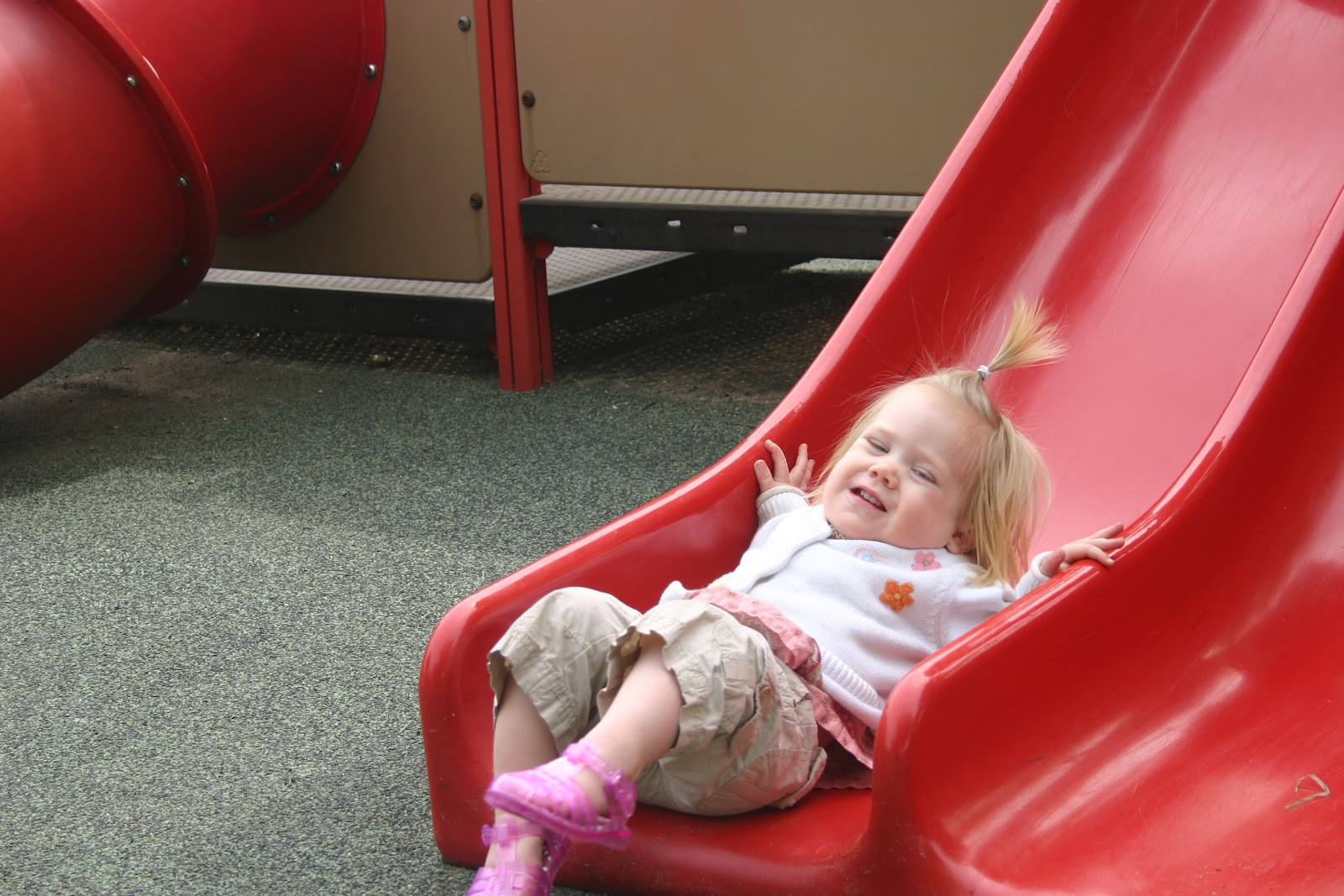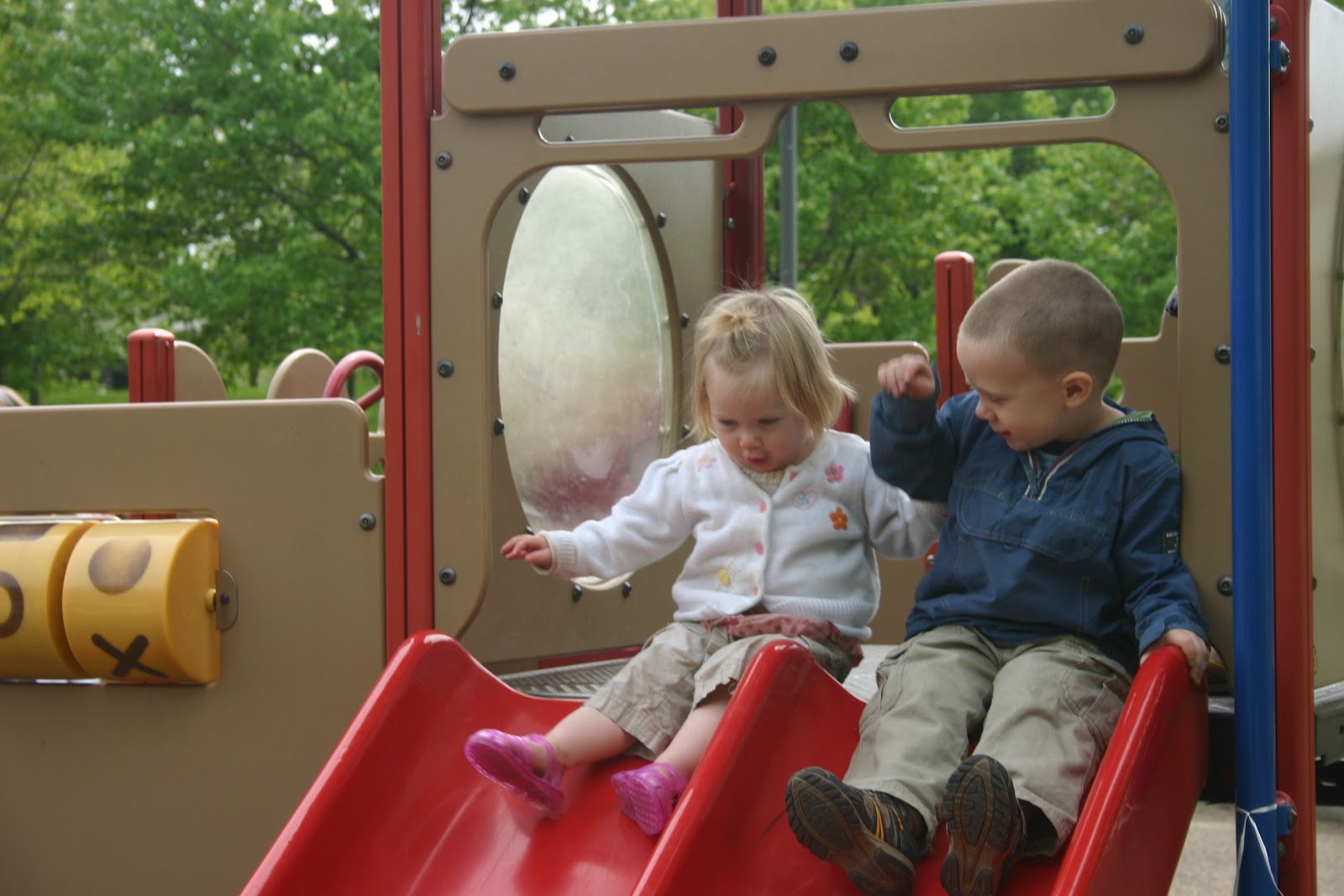 Hadassah was a bit wary about going down a slide when we were at a park in Kentucky, but Athanasius models for all of us what brotherly love would like in such situations: