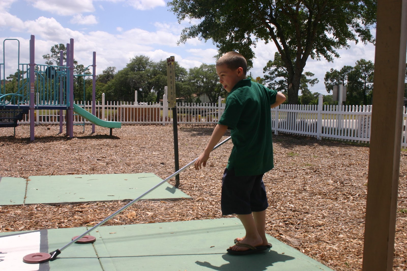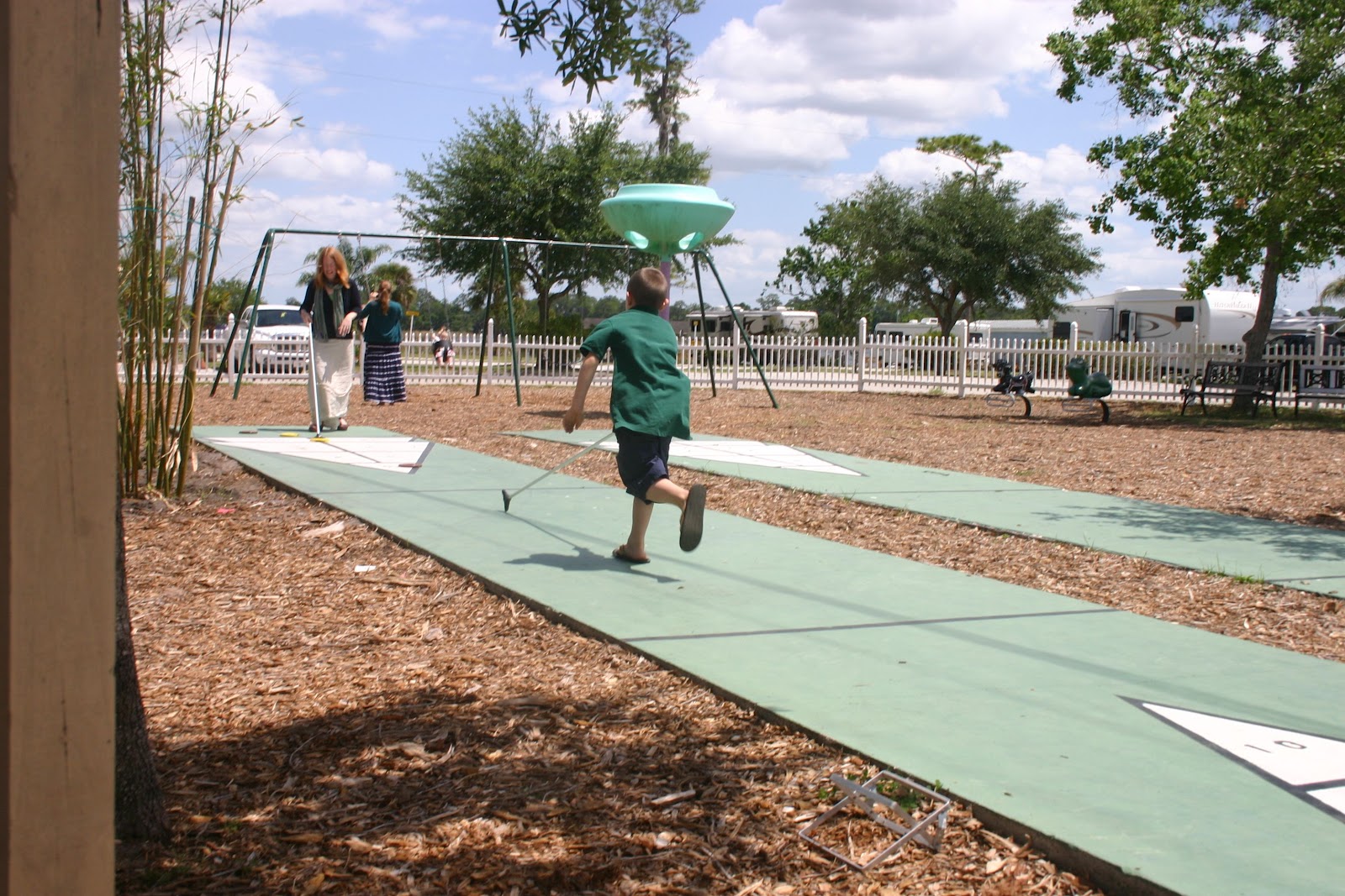 After I finally convinced Nehemiah that a cue is not an elongated hockey stick nor are discs hockey pucks in disguise, he enjoyed a rousing game of shuffleboard with Mama on a sunny Florida day.