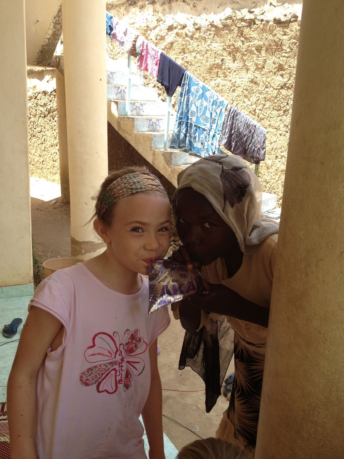 All of our household items from our previous time here were in storage. She went to boil the noodles and asked “Where is your pot?” Ummm… we do have a pot but that is in storage right now. I guess I will ask the neighbor lady for a pot. Then she was getting ready to make the sauce when she asked me, “Where is the knife?” Umm….we do have a knife but not with us right now… (thankfully Kendra had a Swiss Army Knife). Then she asked, “Where are your plates and silverware?” Yeah, I have no idea where those are right now. So, we took the top of a blue barrel which is round and similar to the trays the Chadians eat on, and we put a big plop of noodles with sauce on top of it. Then I told the kids to dig in with their hands:) I know we were totally breaking the etiquette rules and if our children ever eat at your house and start to eat like animals you’ll know why. I can’t remember what we had for dinner that night.