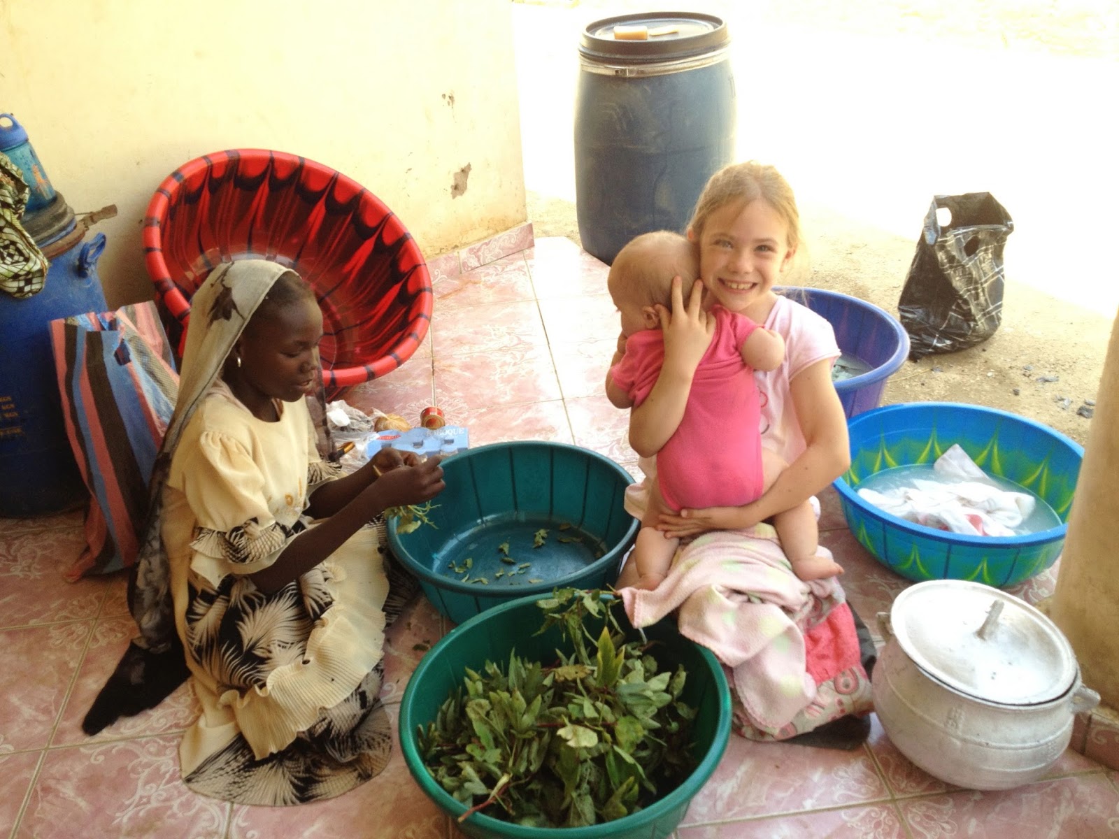 I solved the problem of what we would eat in the evenings when Fatuma wasn’t here. Hard boiled eggs. I started to have Fatuma buy 8 eggs at the market in the morning and then put them on our fire after lunch. That way they are ready for an egg salad sandwich in the evenings. She also gets some order Prozac vegetables that we add in there. We have eaten egg salad sandwiches almost every night for the past three weeks :-) And the only person who really doesn’t like eggs is Nehemiah. I’m starting to be ready to think about some other non-stove options but for now or egg salad option keeps things simple and we all get the protein we need. Here, Evangeline holds Perpetua, while her friend Amina helps peel hibiscus leaves for a sauce we make that goes on rice: