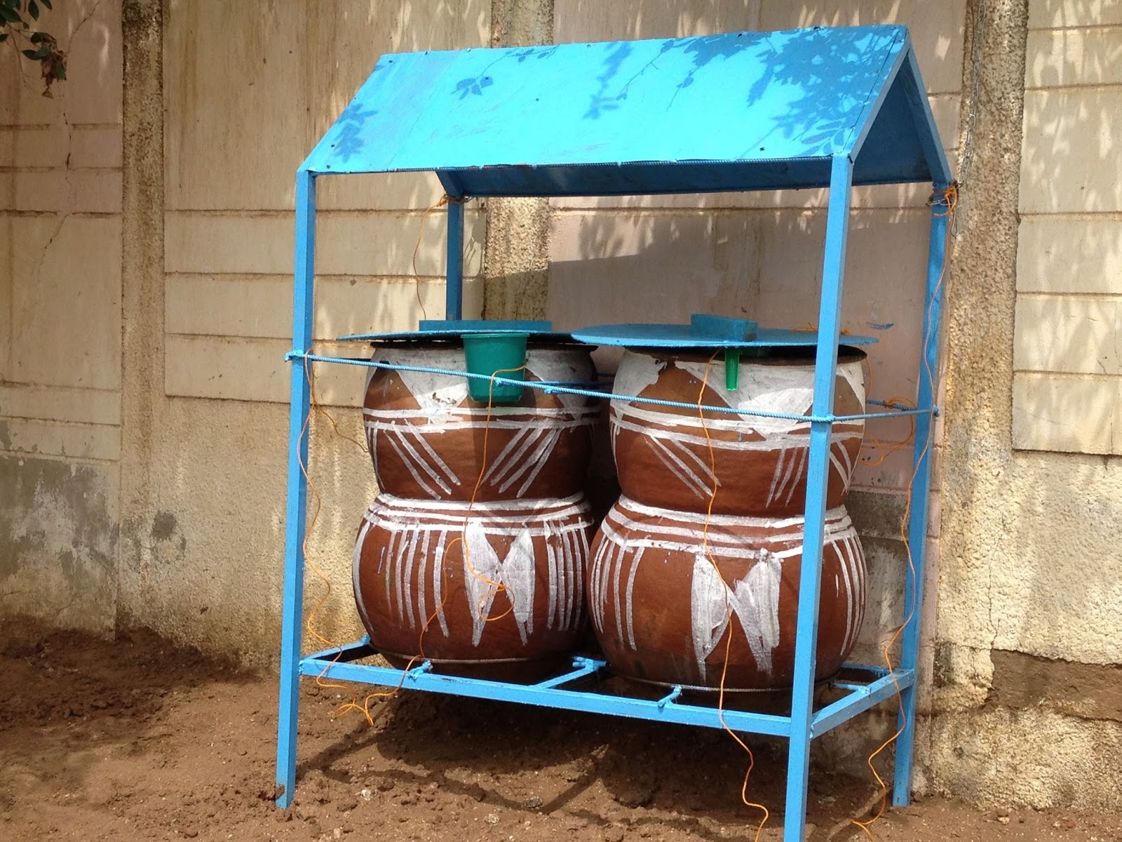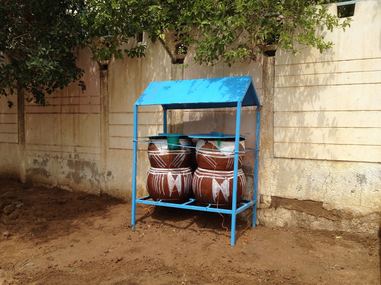 Maybe we’ll share some of the background at another time, but our family decided to set up some clay pots outside of our home for anyone passing by who is thirsty. It has led to many interesting conversation with neighbors and others and we are hoping for many more. Here is the water station: