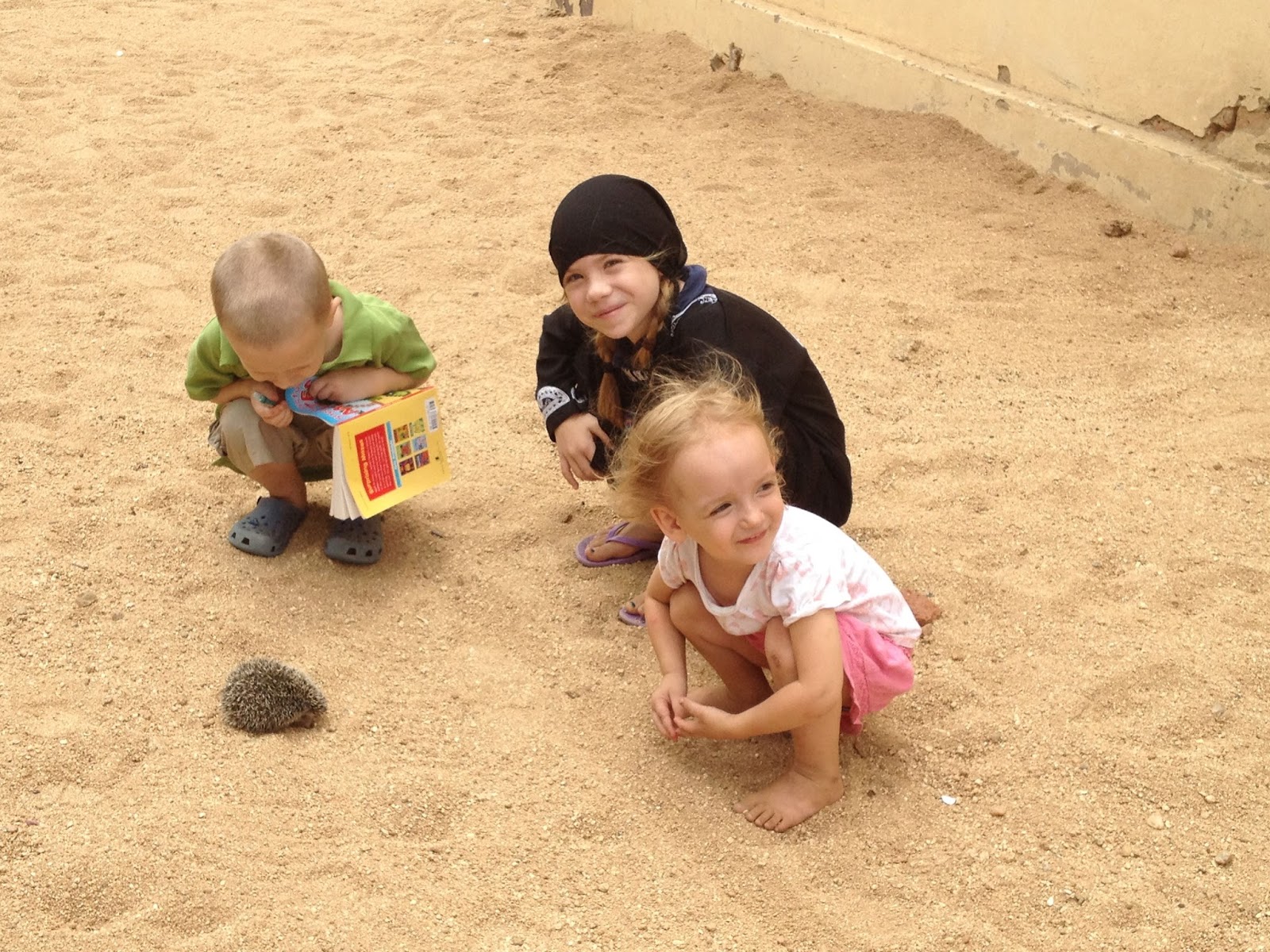 I’m sure every place in the world has its own animals that are native to it. You’ve seen or heard of most of the common domesticated animals of Chad (cattle, sheep, and goats), but here’s an animal that is one of our kids’ favorites.It is a nocturnal animal, so we usually only see them scurrying around at night, if we get up to use the bathroom. If you do happen to find one during the daytime, they will often curl up in a ball, which is their defensive position. These animals are insectivorous, which is a fancy word that means…they eat insects. They have a spiny coat of hair and a tiny snout, sort of like a pig, which is why they are called hedgehogs.